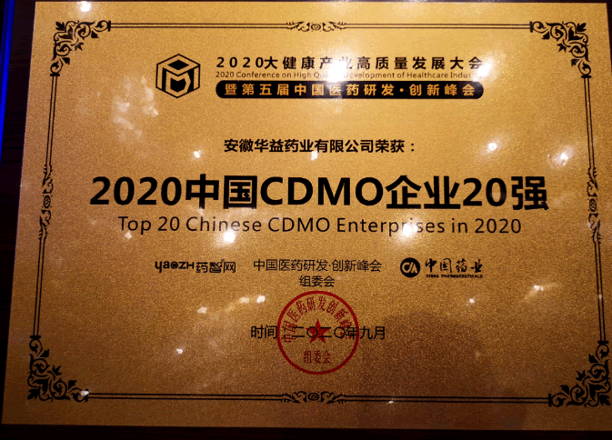 大會(huì)第一天隆重發(fā)布了《2020中國(guó)藥品研發(fā)實(shí)力排行榜》,評(píng)選組委綜合考量企業(yè)管理能力、臨床研究實(shí)力、品牌影響力、營(yíng)業(yè)額、行業(yè)口碑等多項(xiàng)標(biāo)準(zhǔn),評(píng)選出藥品研發(fā)實(shí)力、CRO企業(yè)、CDMO企業(yè)等六大行業(yè)榜單,華益藥業(yè)榮獲“2020中國(guó)CDMO企業(yè)20強(qiáng)”榮譽(yù)稱號(hào)!